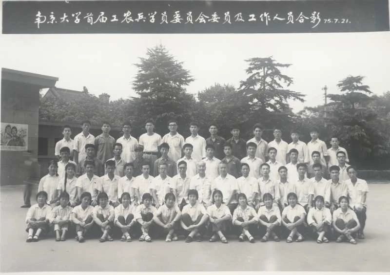1975年7月与av片 首届工农兵学员委员会委员及部分工作人员合影。二排右起第六位是徐立贵。